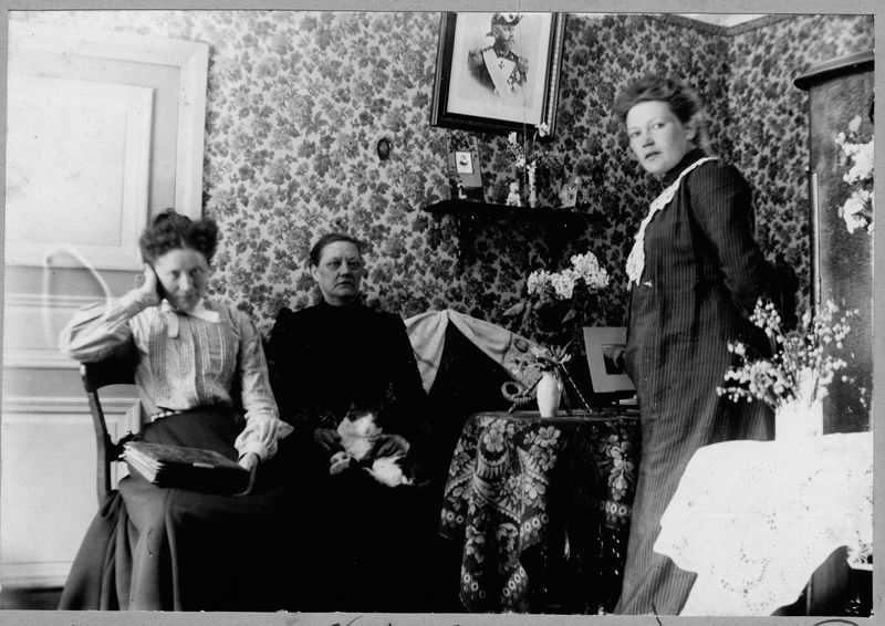 Damerna i vävnadshandeln på Drottninggatan till höger Fru Persson, Vänersborg