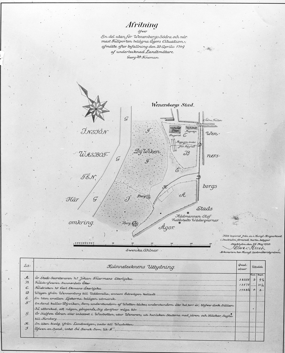 Karta över södra delen av staden år 1749 enligt Georg Joh. Fineman