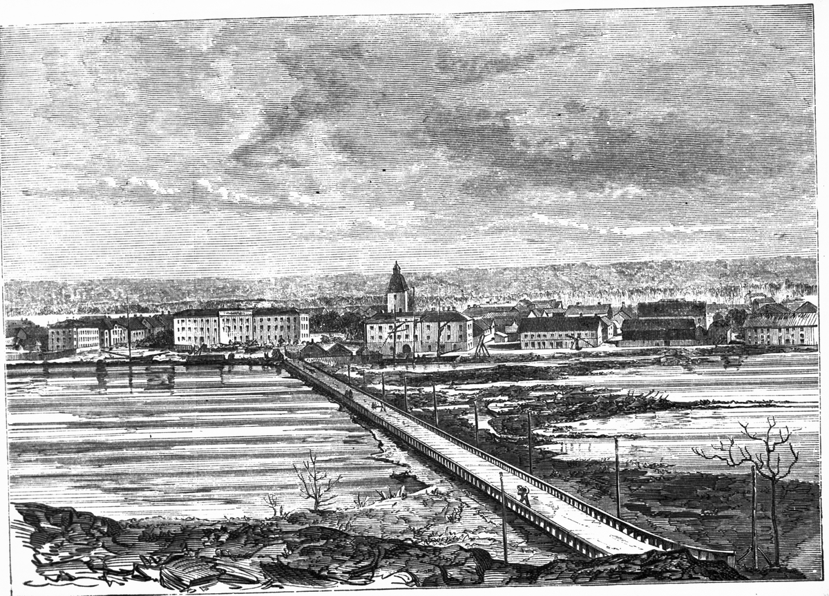 Utsikt från Vänersborg, från Dalbobron 1870.