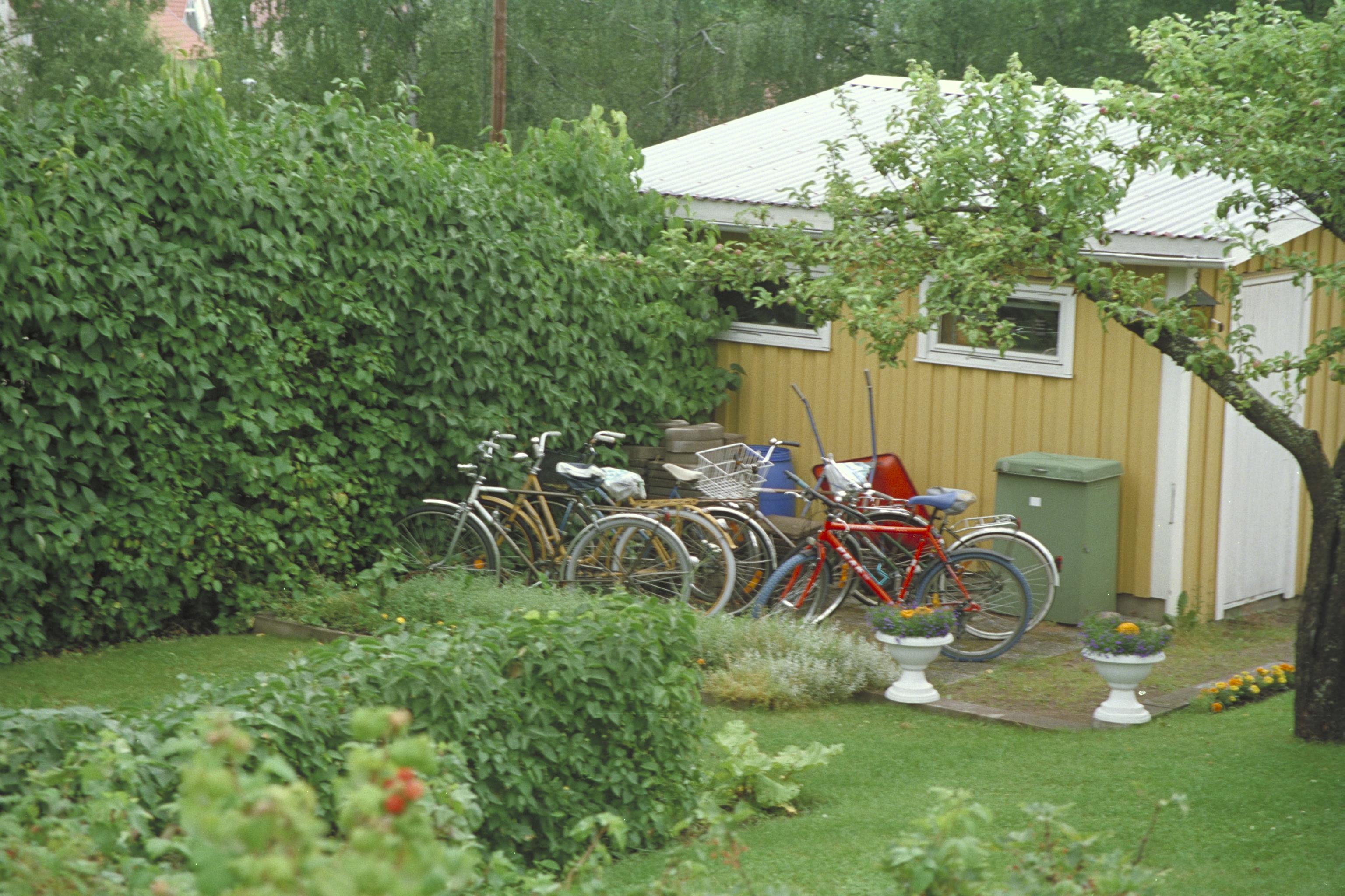 Bostadsområdet Karlberg, Betaniagatan. Uthus och cyklar.