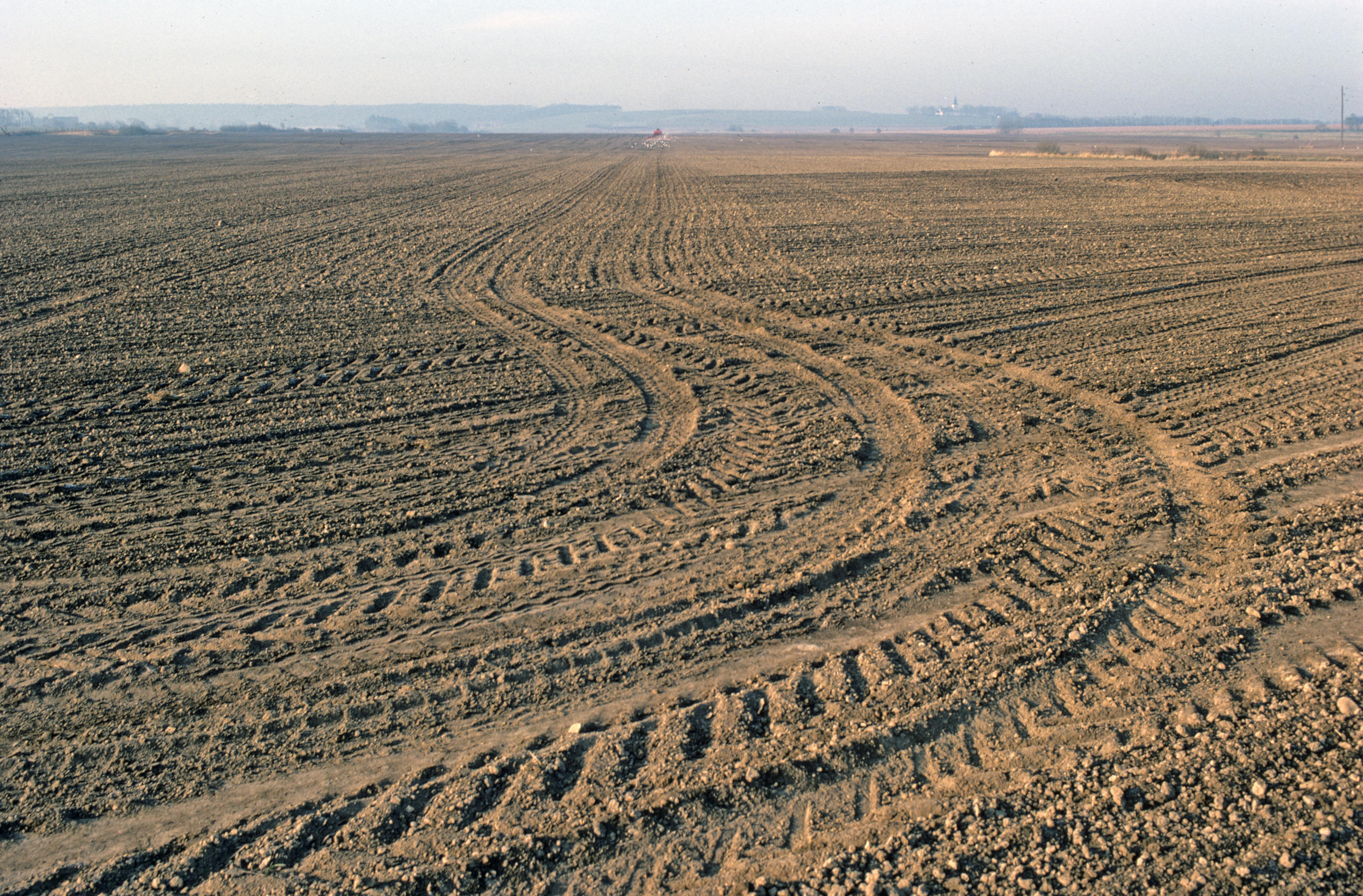 Beskrivning: Plöjd åker. Bilden troligen från mitten av 1970-talet.