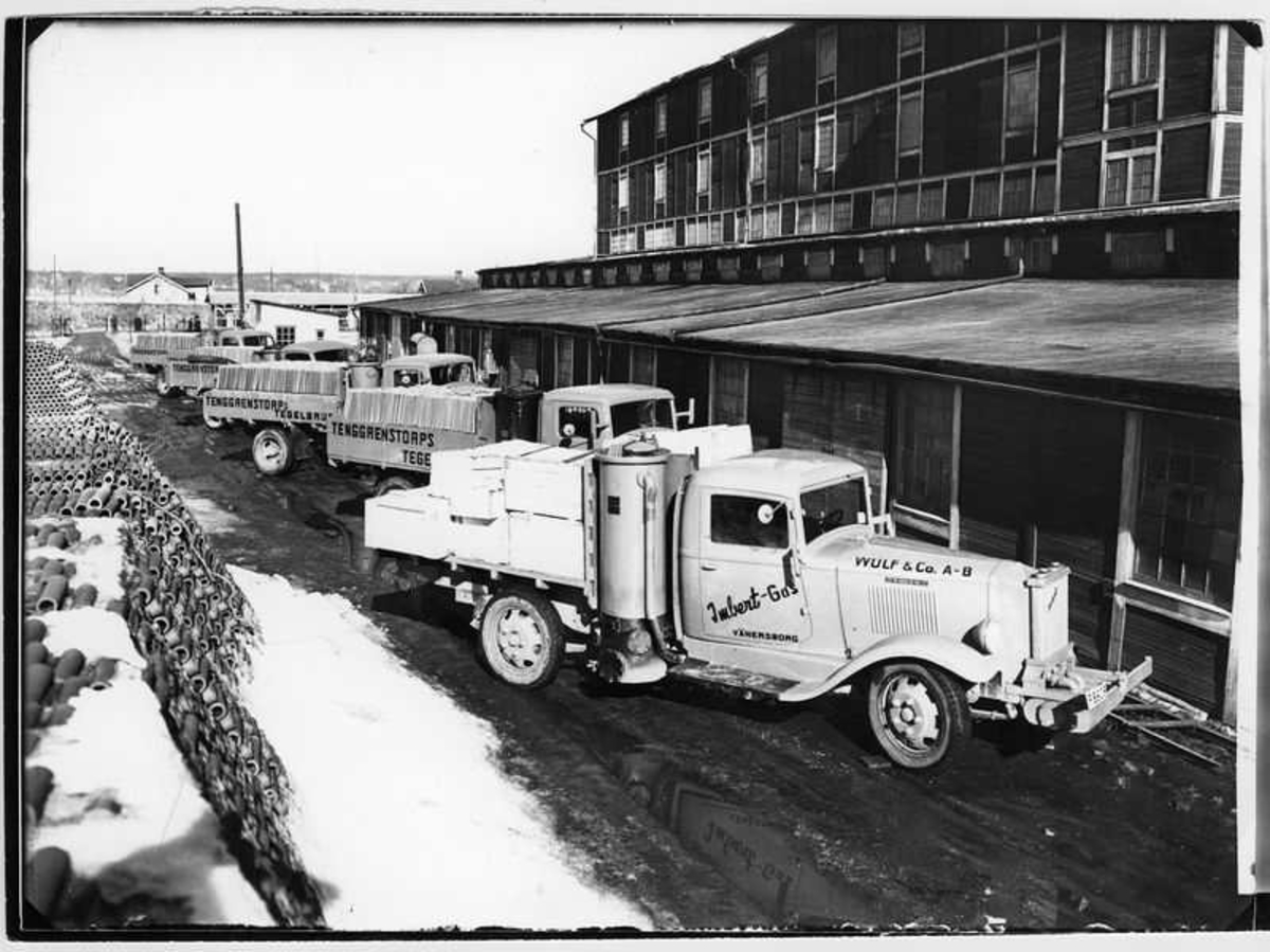 Lastbilar fullastade med tegel, Tengrenstorps tegelbruk Vänersborg