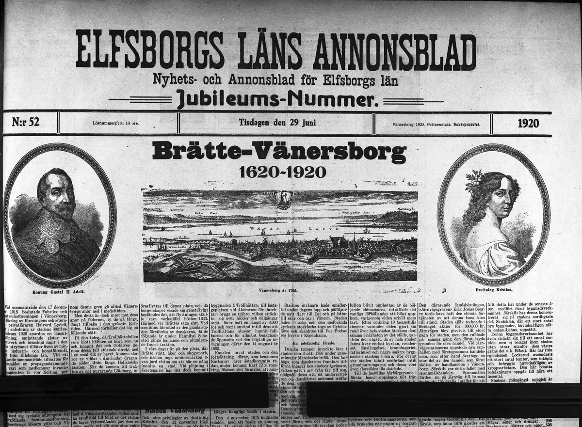 ELA Jubileumsnummer 29.6.1920, Brätte-Vänersborg 1620-1920