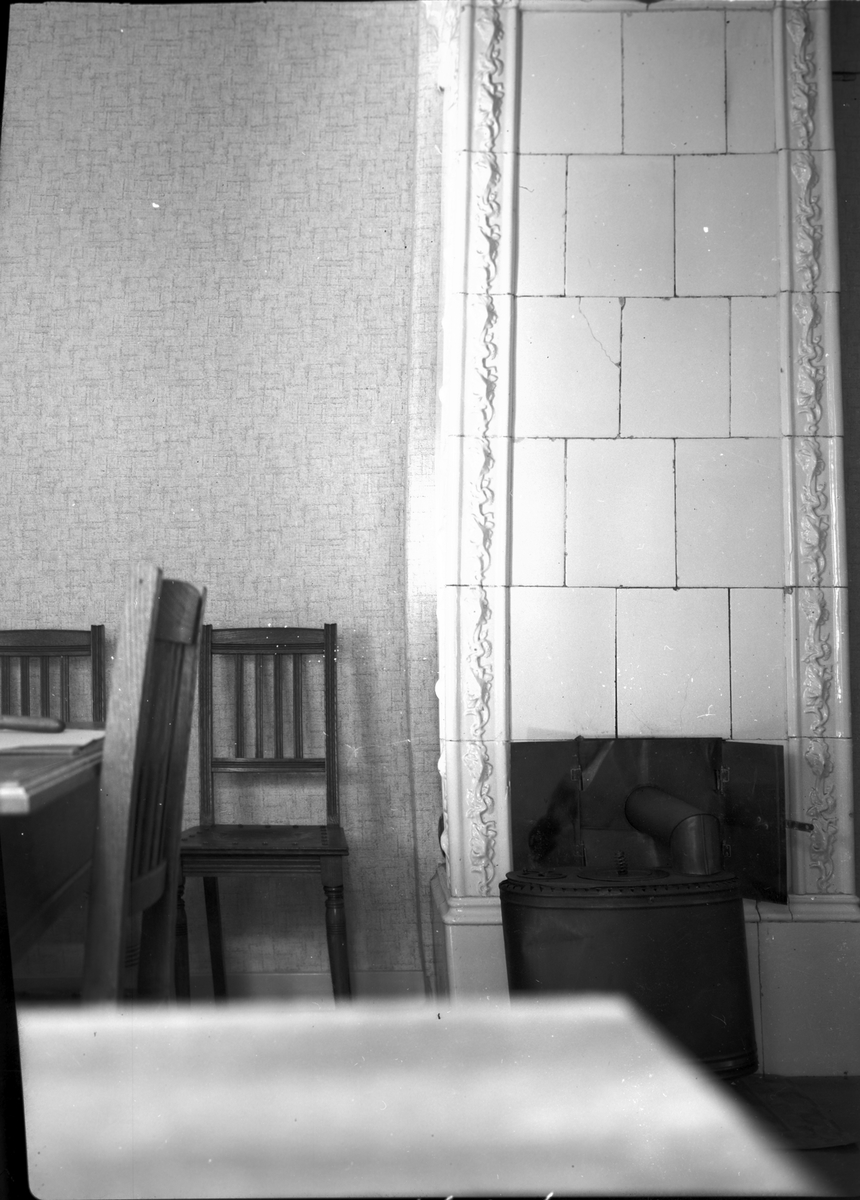 Järnkamin. b Kamin med kakelugn. c-g Kakelugn. Alltorps tingshus Ödskölt