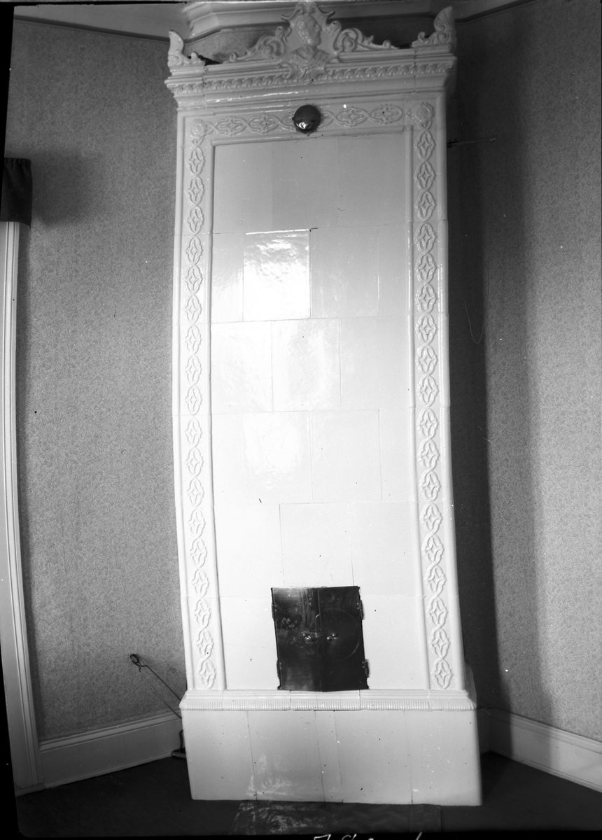 Järnkamin. b Kamin med kakelugn. c-g Kakelugn. Alltorps tingshus Ödskölt