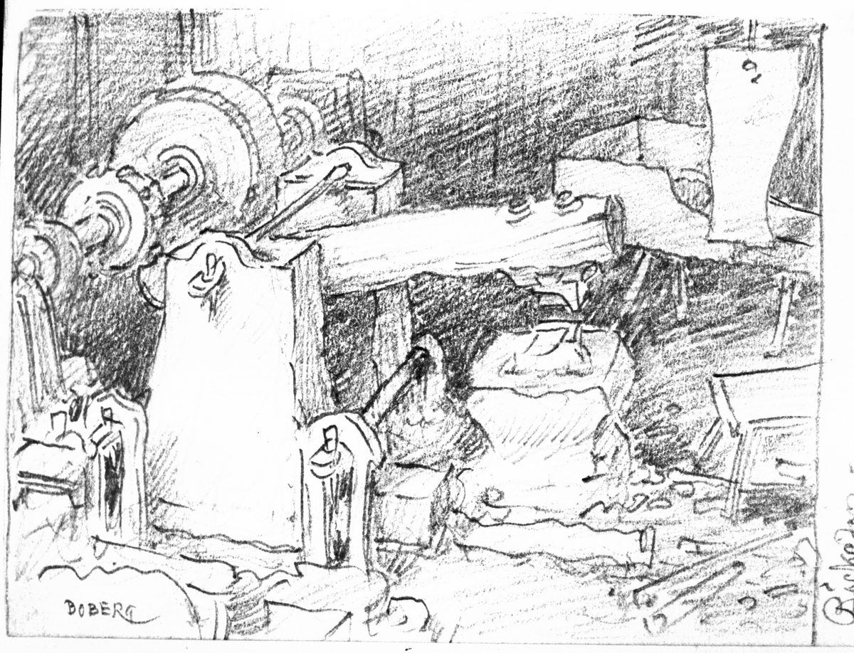 Bäckefors Bäcke. Spikhammare. Teckning av Ferdinand Boberg