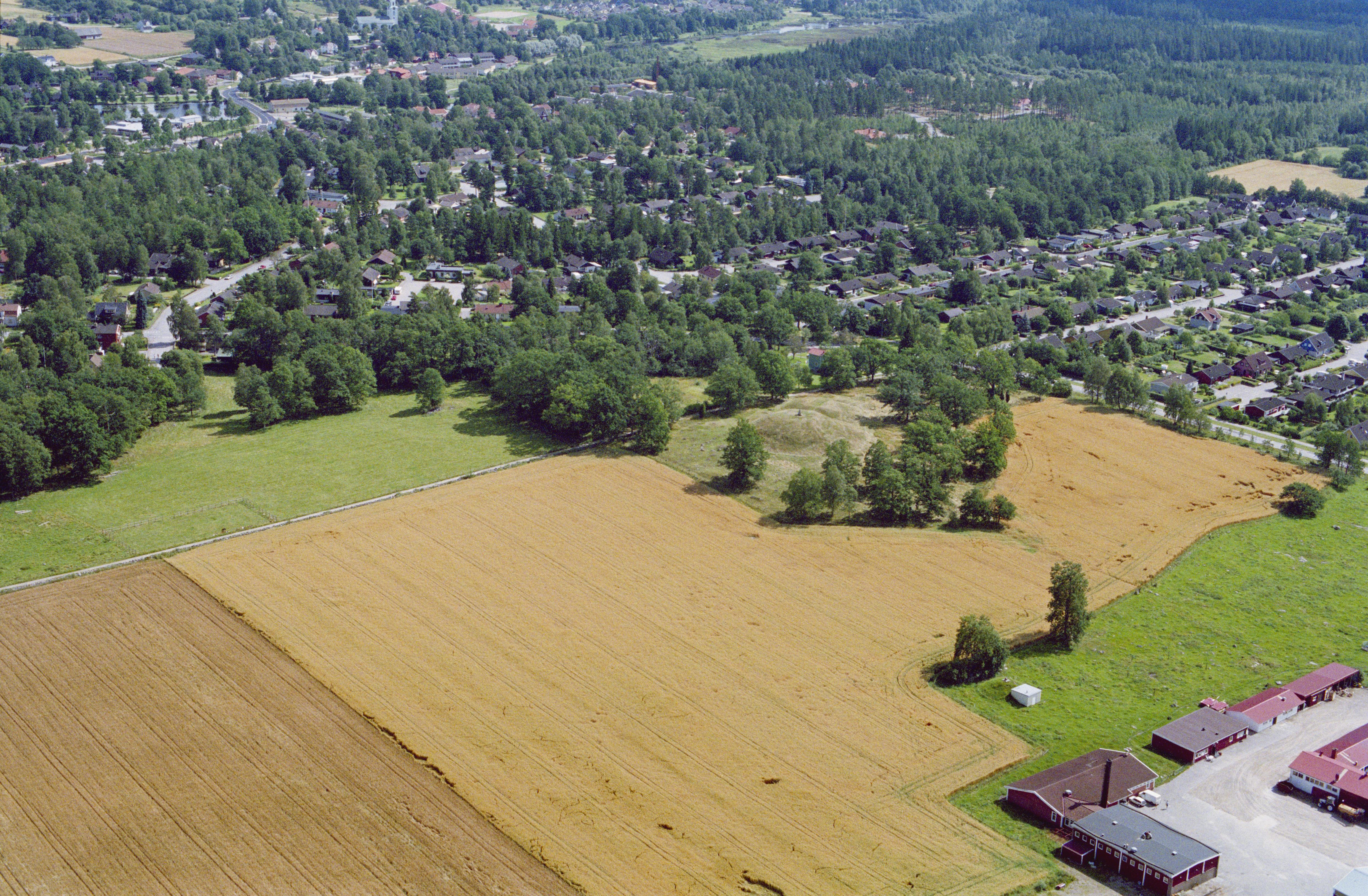 Vid bildens mitt gravfält Inglingehög (skrivs även Inglinge hög) RAÄnr Östra Torsås 1:1 i västra delen av Ingelstads tätort. Bilden är tagen mot (väderstreck): SO