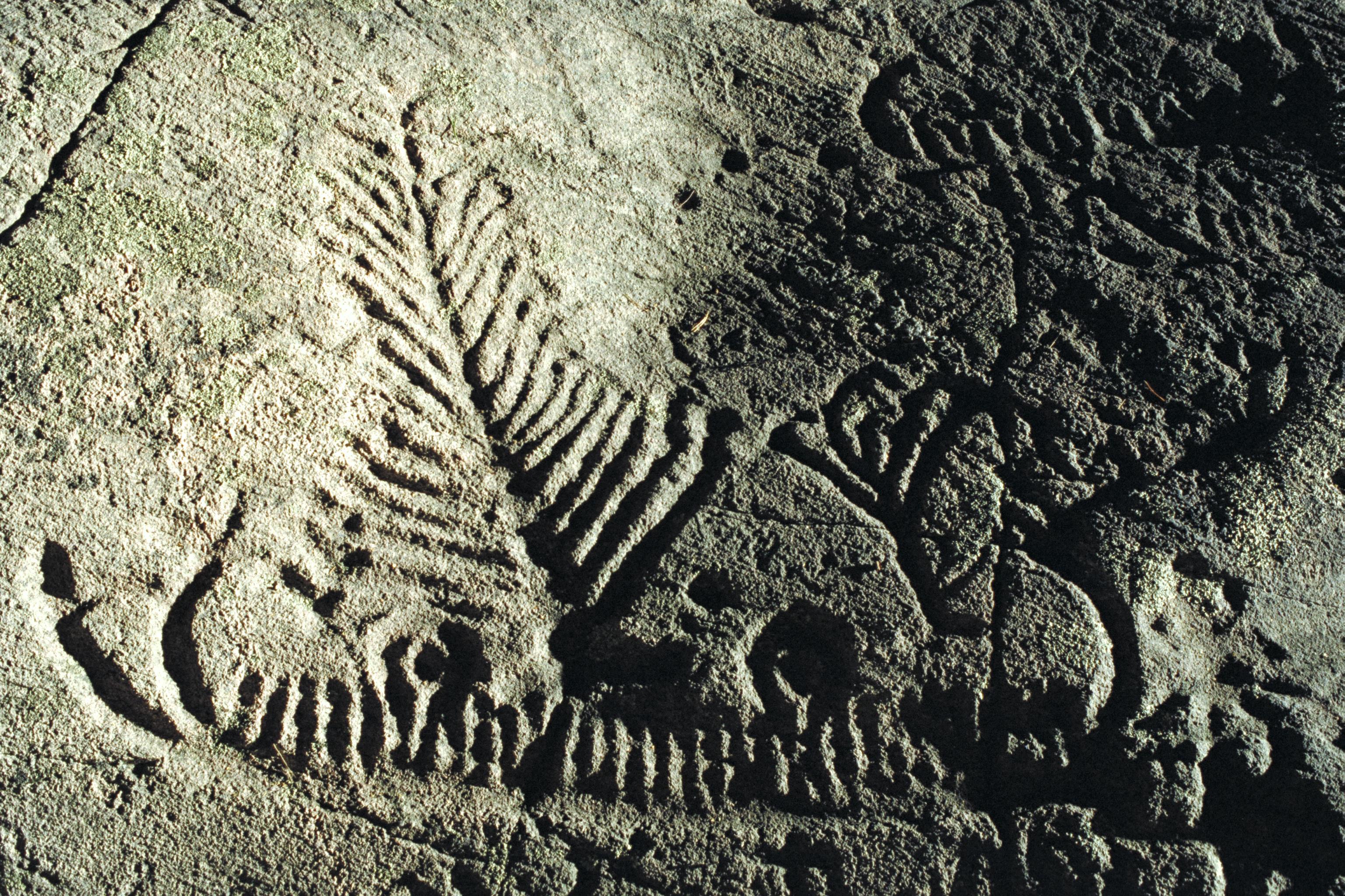 Skepp och gran- eller ormbunkes-liknande trädfigur.