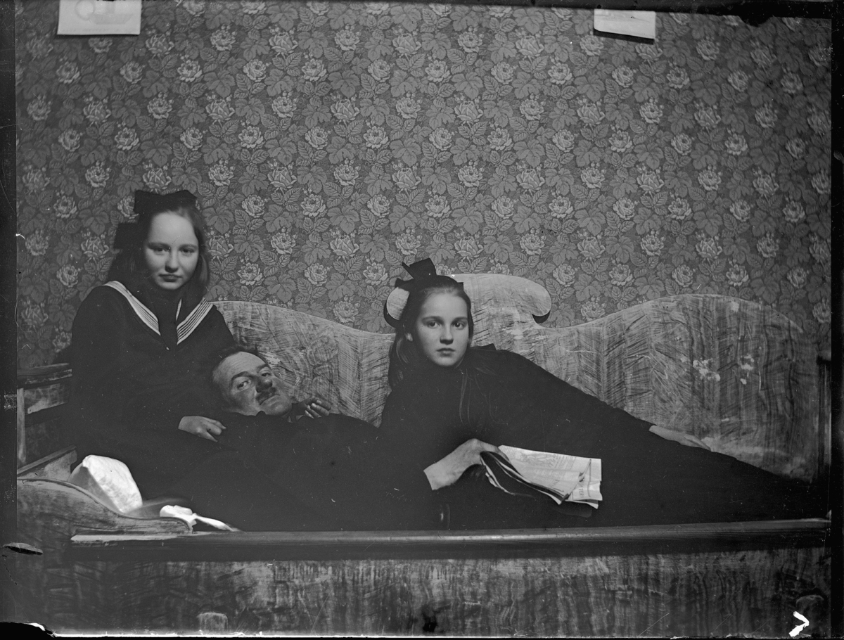 Morbror Oskar, Elsa och Märta vila i soffan.