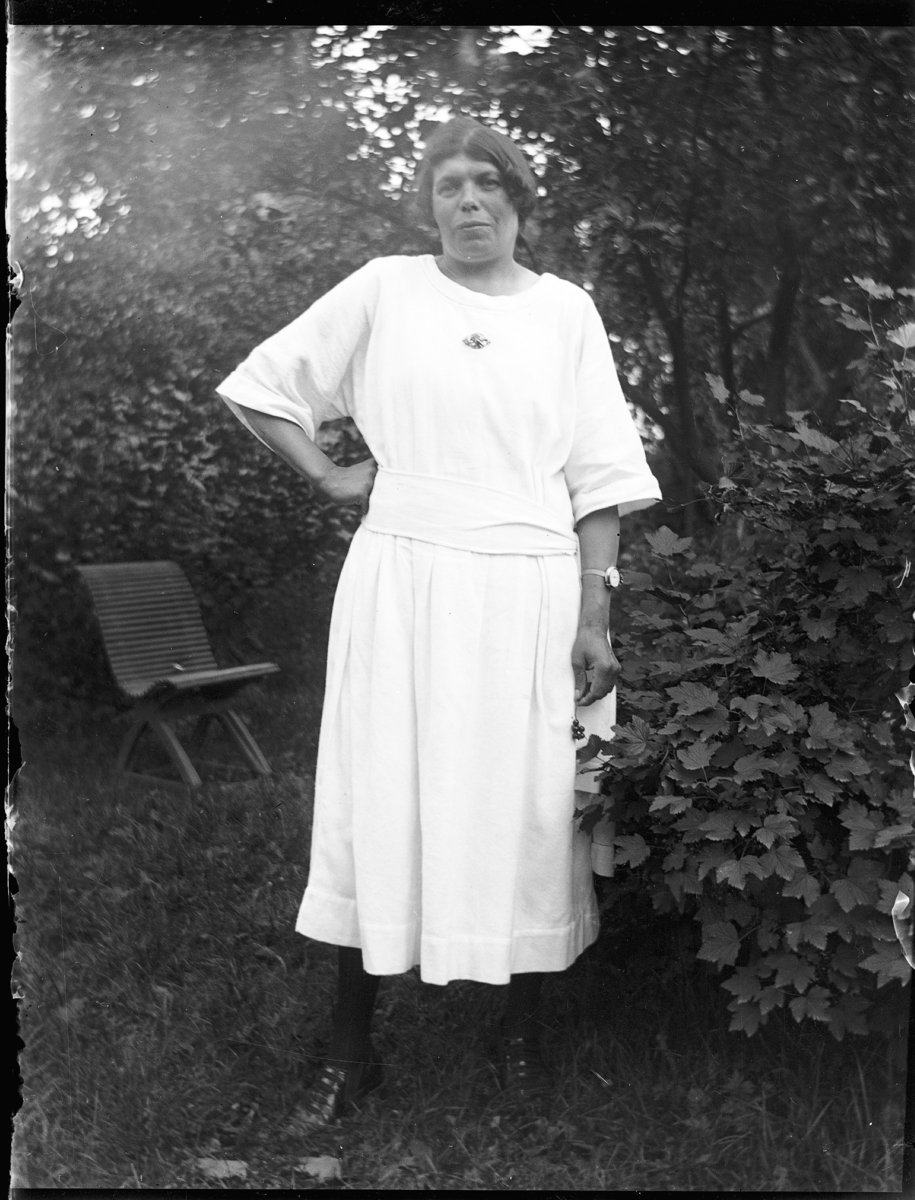Vilhelmina (Mina) Nilsson i trädgården till det hus Morfar bebodde vid Billerudsgatan.