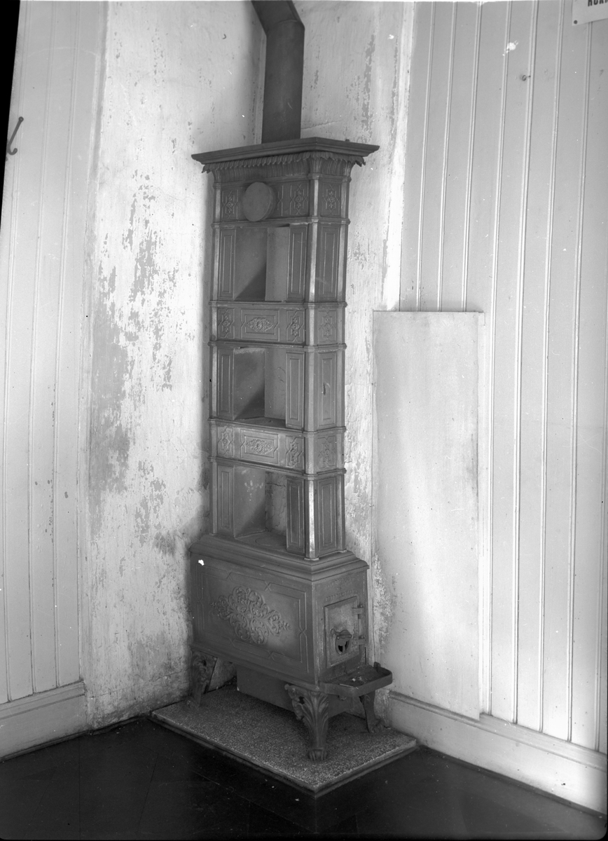 Järnkamin. b Kamin med kakelugn. c-g Kakelugn. Alltorps tingshus Ödskölt