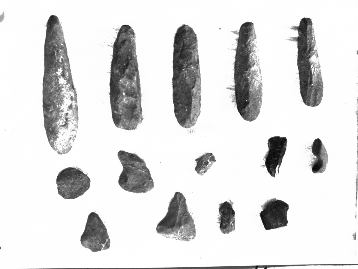 Fynd från stenåldersboplatsen vid Sunnanå, ägare G Eriksson.Sunnanå. Holm