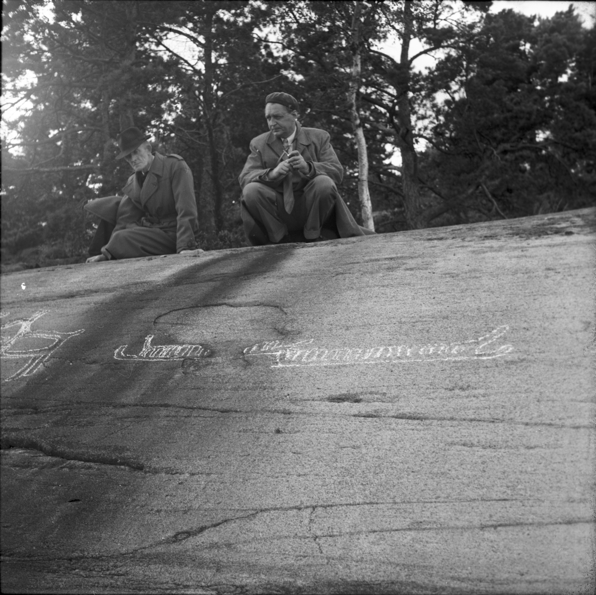Landsantikvarien Hallbäck målar i hällristningar. Bolstad