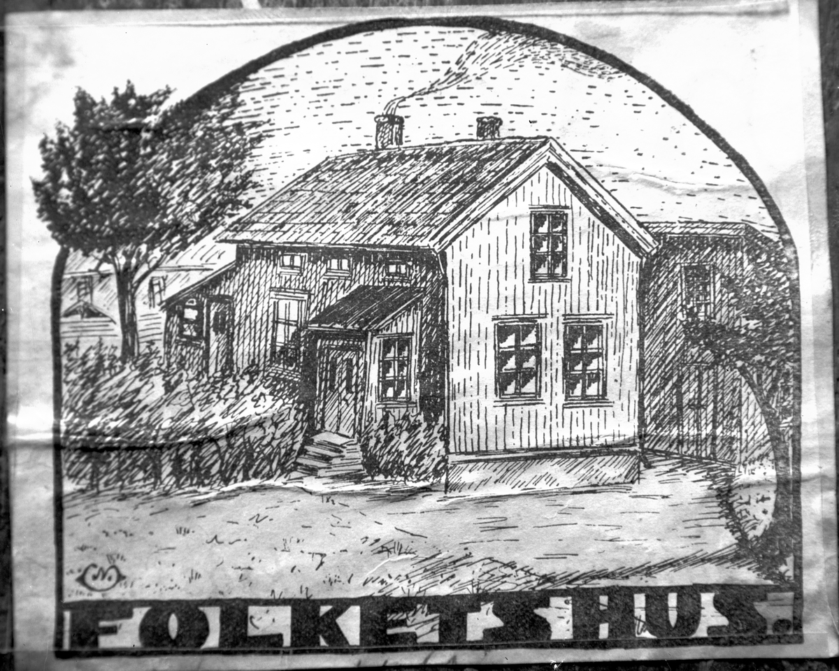 Teckning av Folkets Hus Vänersborg av Karl Nordberg.