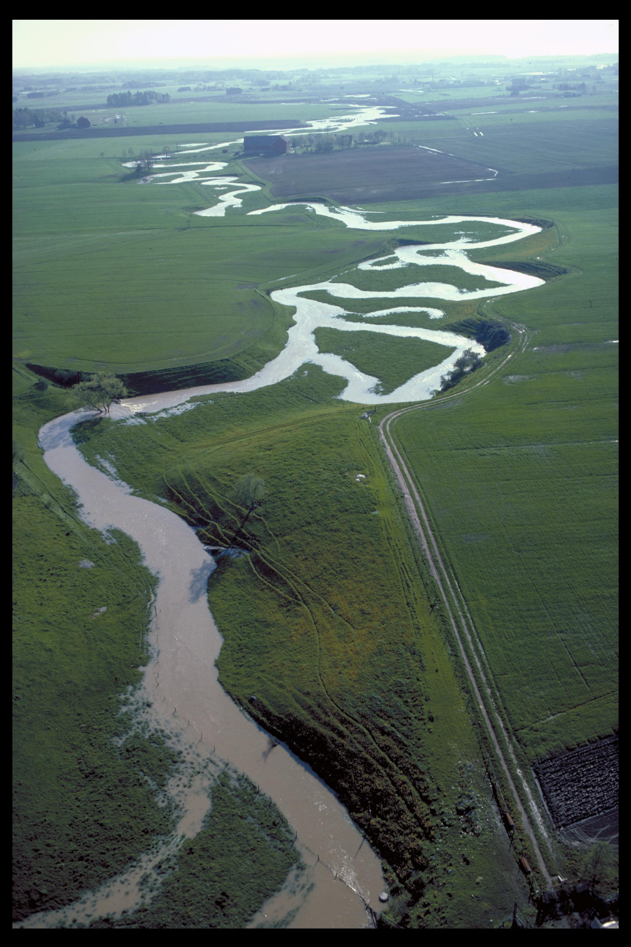 Vattendrag på slätt. Bilden troligen från slutet av 1960-talet.