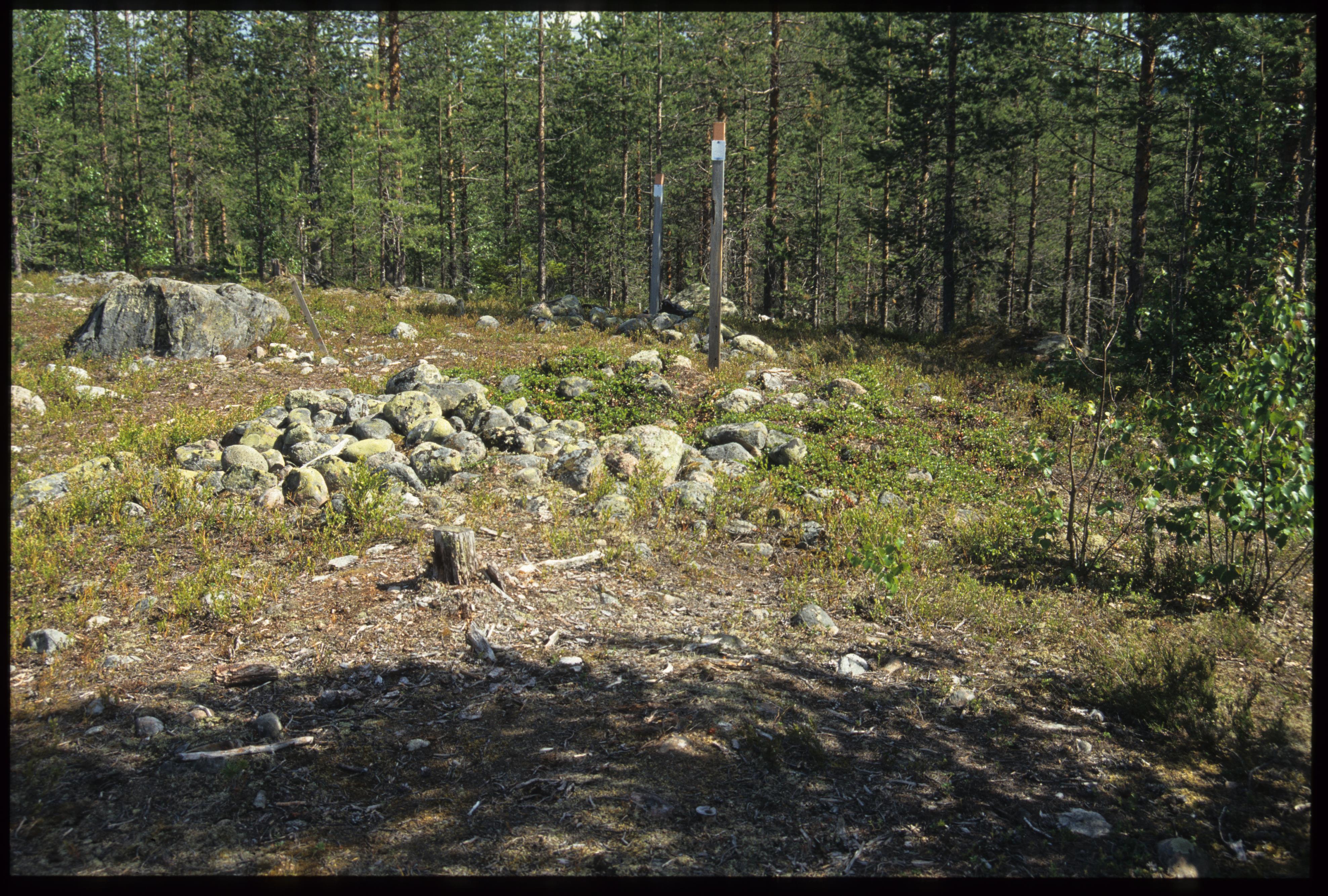 Gravfält, 80x30 m (NV-SÖ), bestående av 9 stensättningar, varav 3 röseliknande.