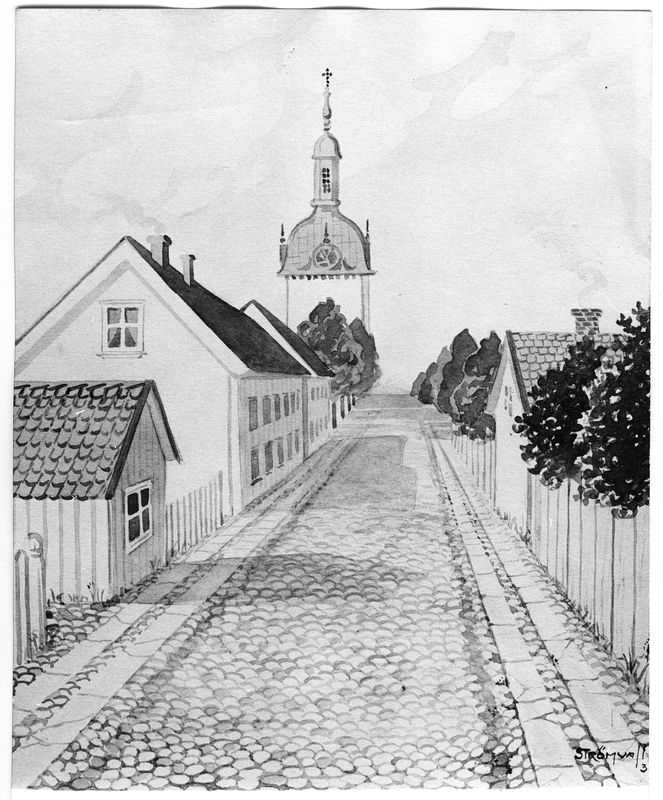 Strömvalls (teckning) akvarell, Kyrkogatan Vänersborg