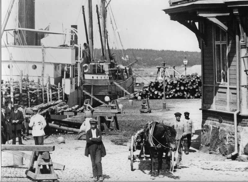 Liv och rörelse vid gamla hamnkanalen, Vänersborg. Strandhotellet byggt 1890 skymtar till höger.