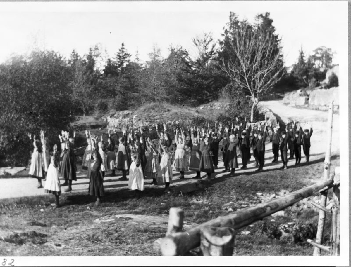 Gymnastik-Anders Johanssons fotosamling negativ nummer 282, skolbarnen lägre avdelning Främmestad