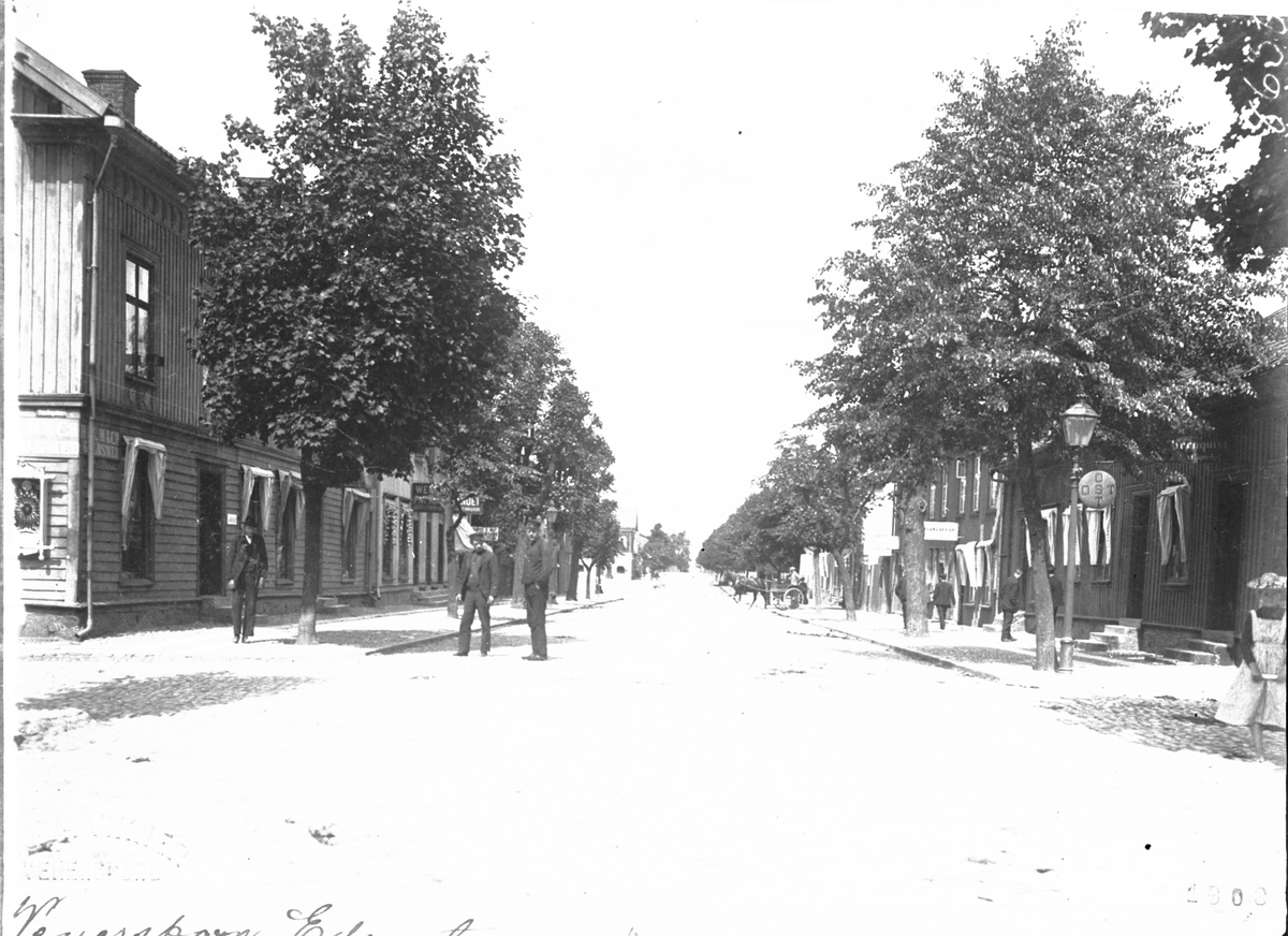 Södra delen av Edsgatan före de stora trädens fällande omkring 1920 respektive 1925. Vänersborg