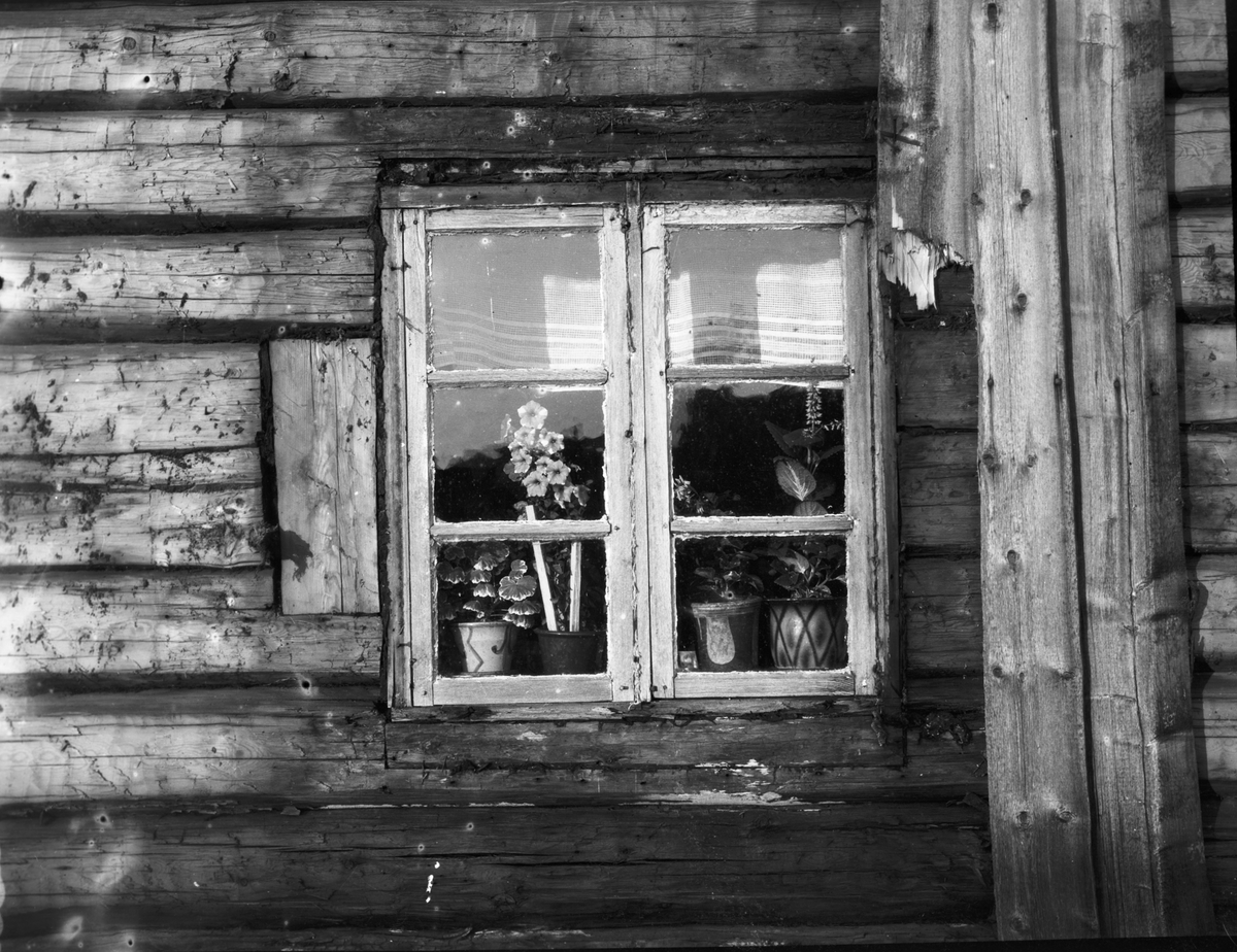 Ett vänligt fönster i stugan före restaureringen. Gäserud Håbol
