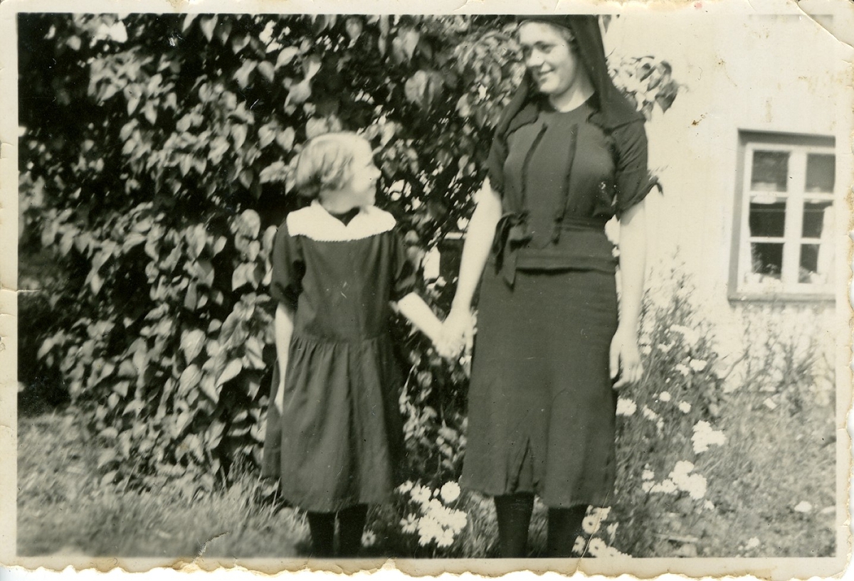 Rosa och Ruth Johansson står hand i hand på gård. Lerdal
