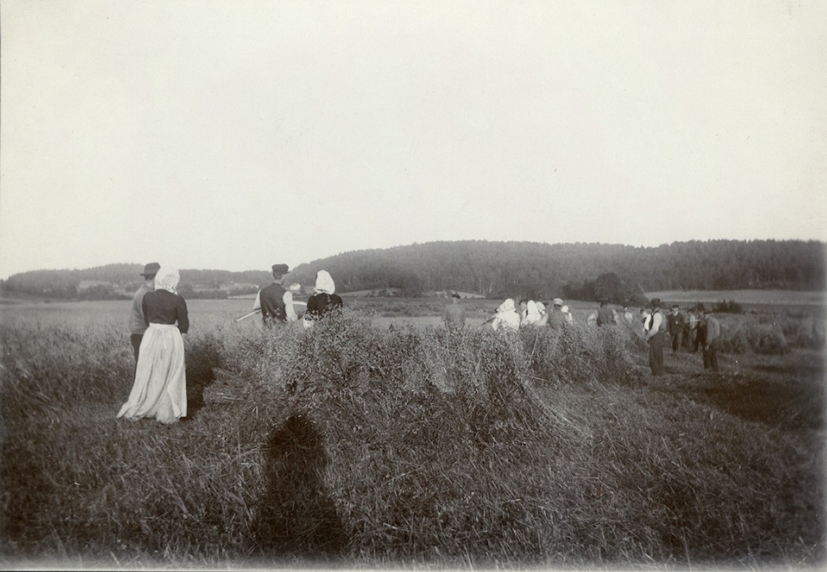 Skördearbete. Kvinnor och män arbetar på åkern. Kilanda
