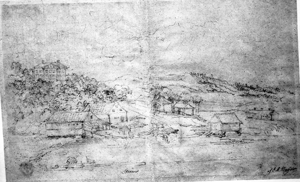 Teckningar av J A Beyer (1780-1834) omkring 1820. Ström, Lilla Edet