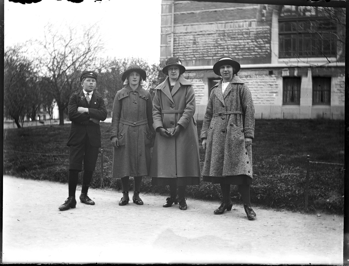 Ungdomsgäng på promenad: Lilly Enroth, Elsa Jansson, Bojan och Henning Pettersson. Hagaplan?