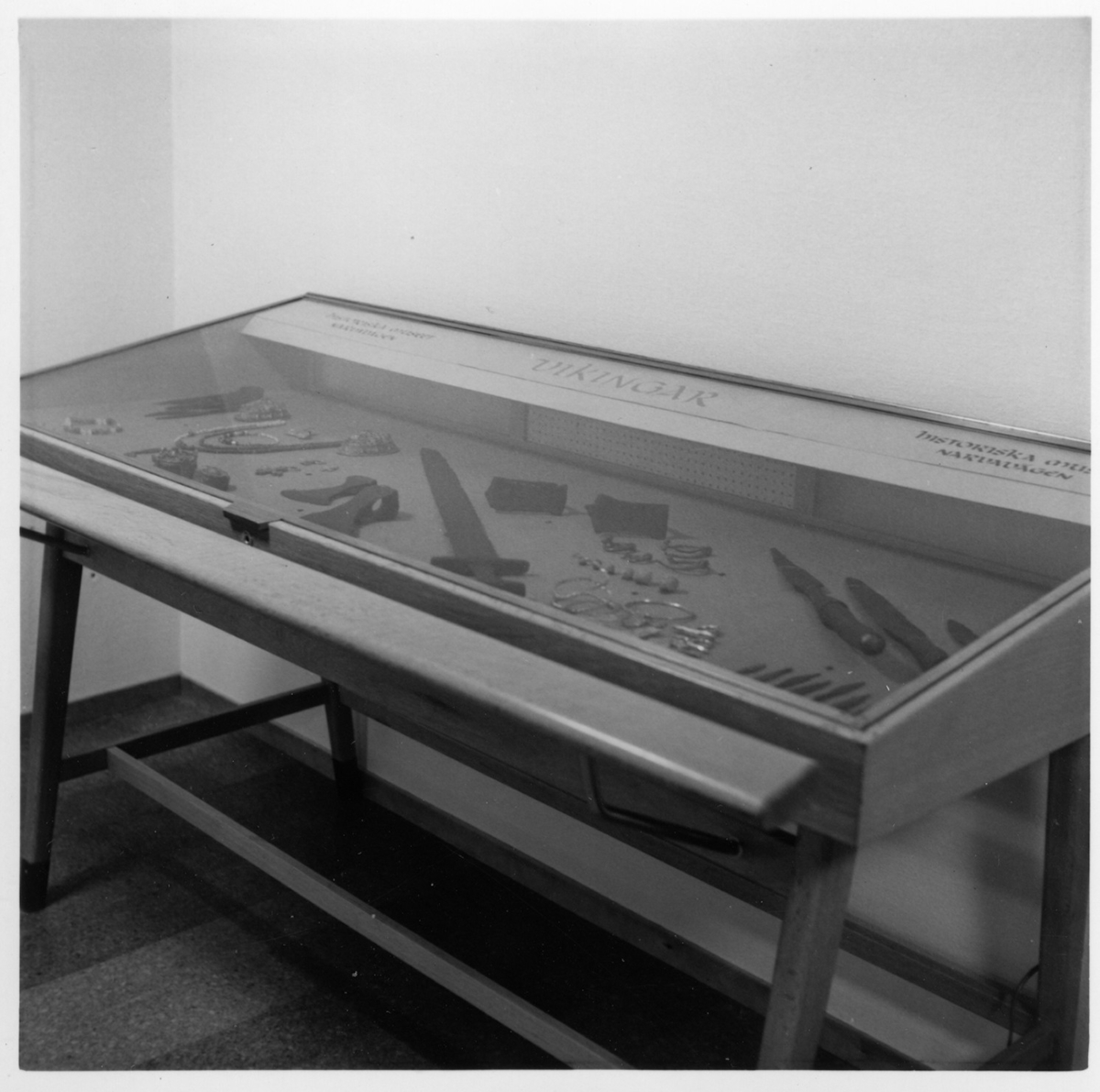 Dals-Ed, Utställningsmonter Vikingar, med diverse föremål.