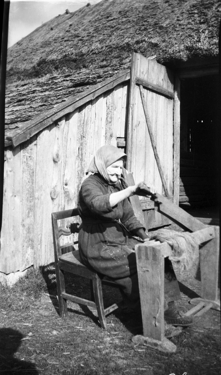 Heder framför sin stuga b. Heders maka framför uthus Låkön Järbo