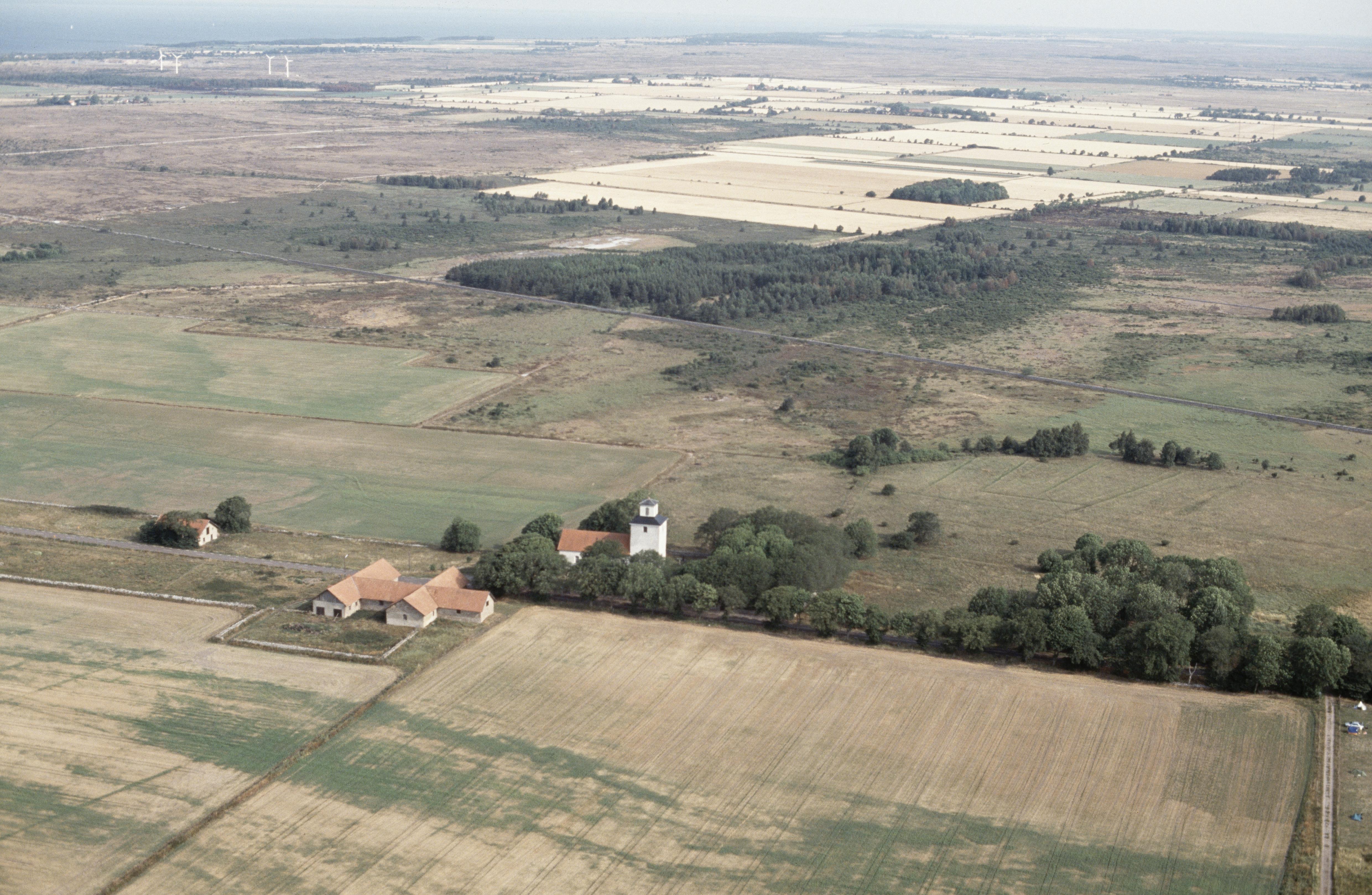 Ås kyrka i södra delen av Alvaret. Bilden är tagen mot (väderstreck): NNV