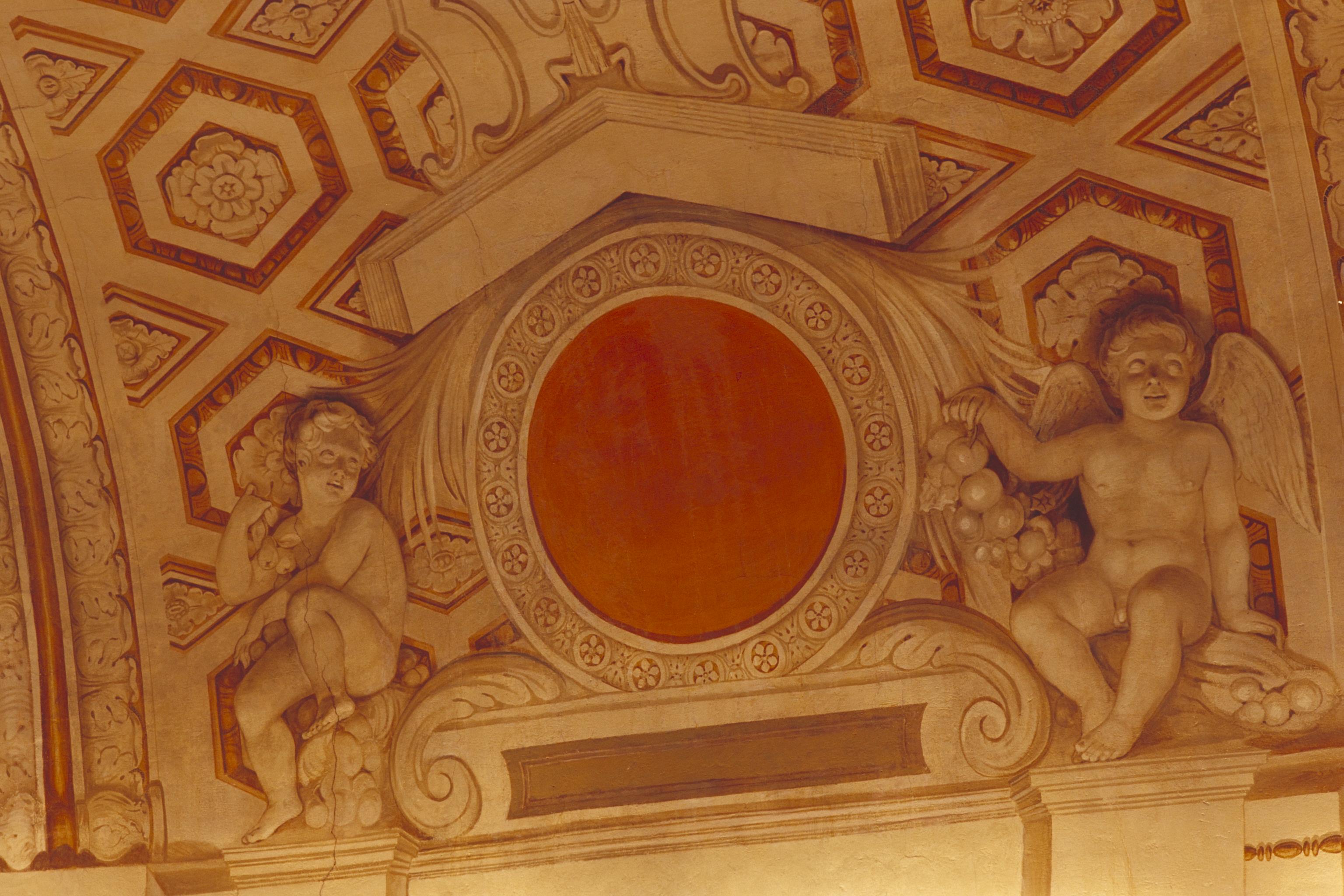 Slottets trapphus, änglaskulpturer i stuckaturen.