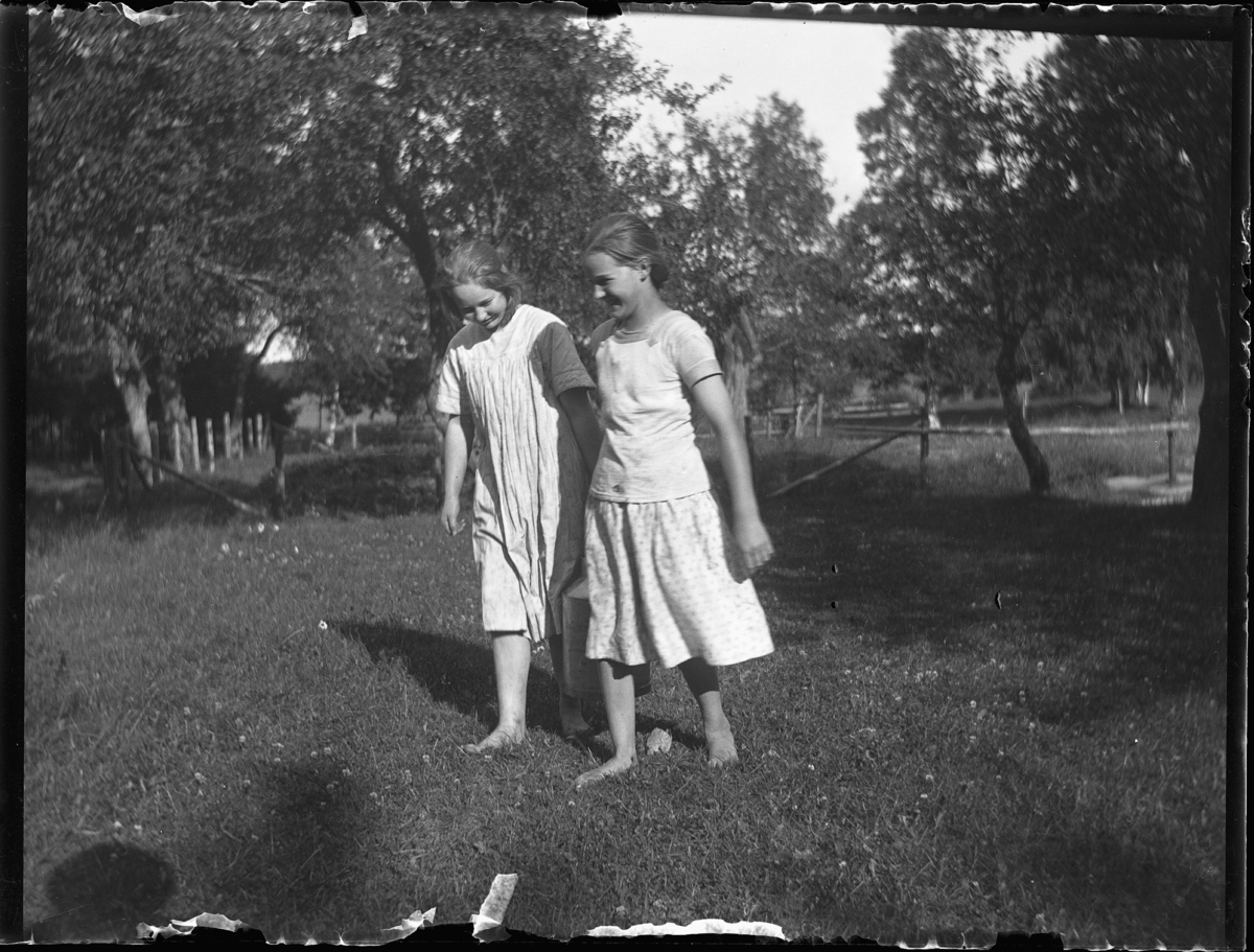 Elsa och Märta bära vatten från trädgårdskällan.