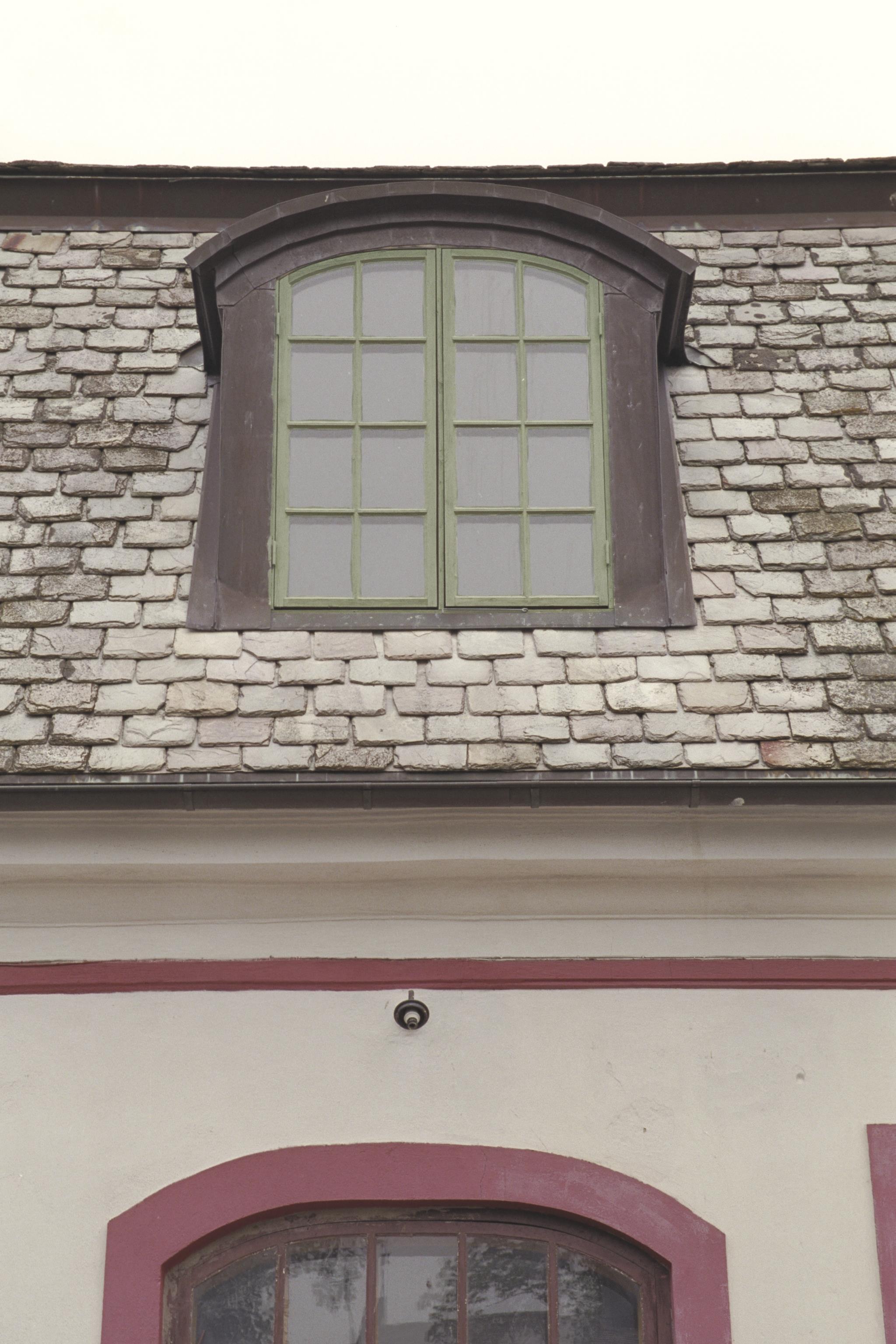 Norra flygelns södra fasad, takkupan samt del av skiffertaket.