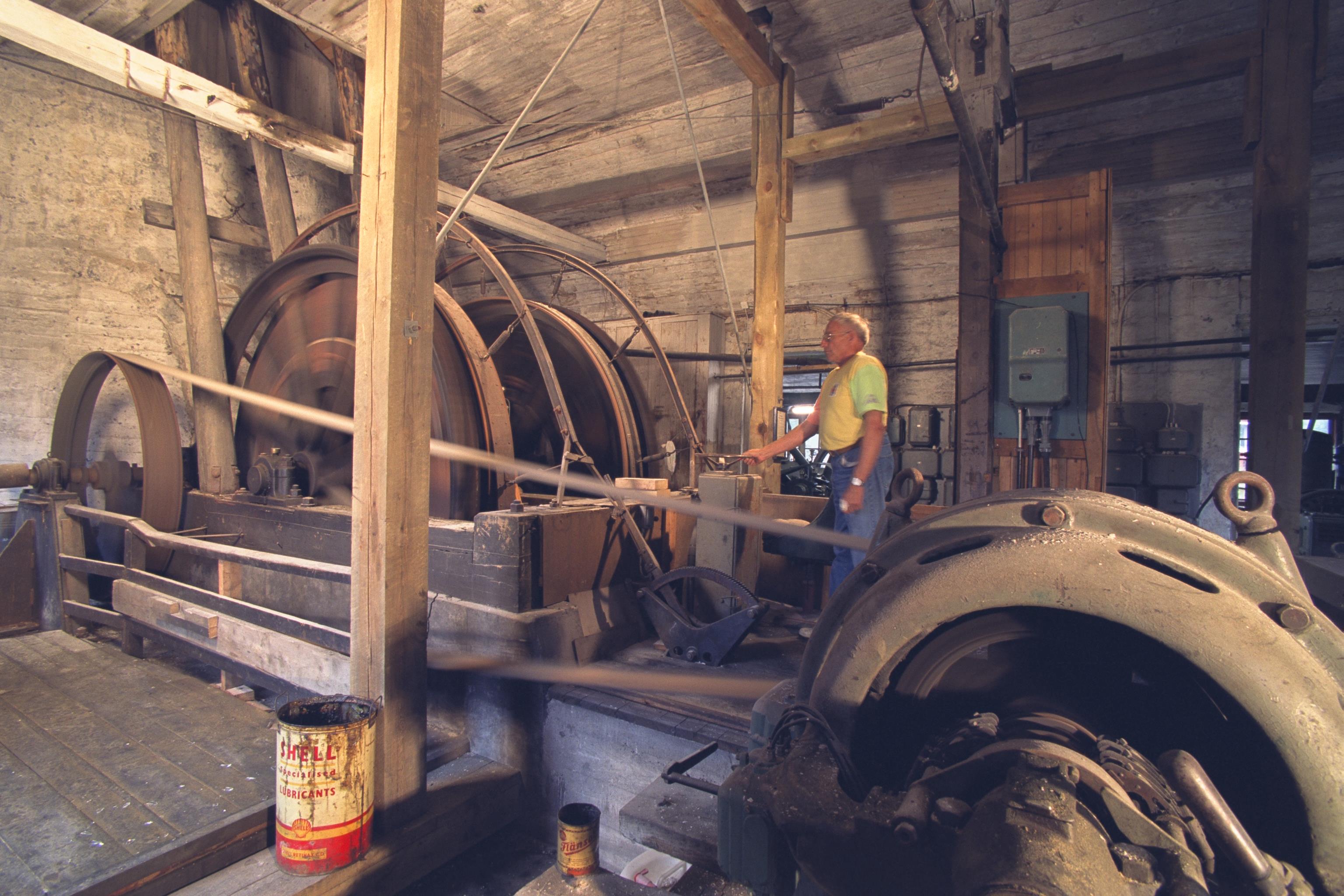 Interiör från gruvlaven. Maskinhall för uppfordringshissarna
