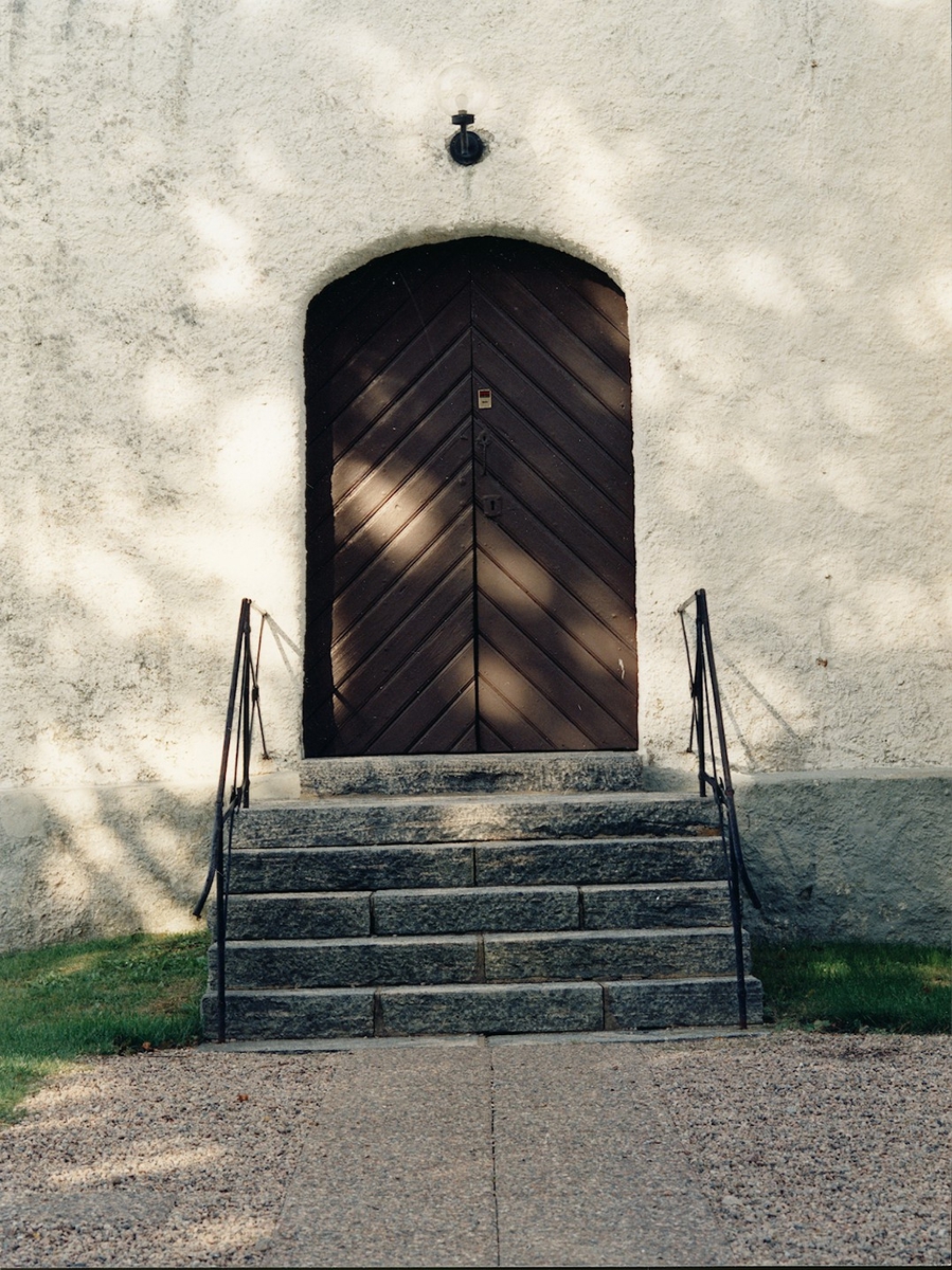 Exteriör. Kyrkport och trappa. Långared kyrka. Ärende: Handikappanpassning. Dnr. 430-1072-96.