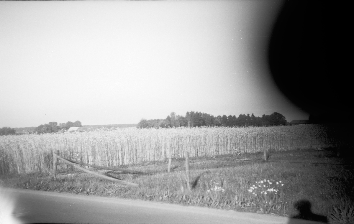 Vetefält i Söbyn. Kallas stenhägga. Fornlämningarna i bakgrunden hägga. Brålanda