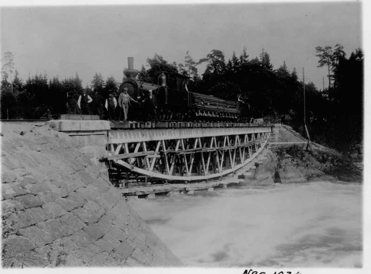 Stålbron över Huvudnäsfallet. Belastning av järnvägsbron över Huvudnäsfallet vid banans ombyggnad Huvudnäsön Vänersborg