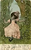 Maskeradbal. En brorsdotter till Mathilda i skir klänning prydd med blomstergirland och blommor även i hår, hand och på skorna.