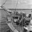 Till havs. Bild av bryggan. Dbnr 50/57. code nr: 023, Reg nr:11505. datum... Copyright: MPD. Neg nr (neg innehas av kpt Olow).