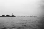 Fotografi ur Detlow von Brauns album. Segelbåtarna 5-S10 LA FEMME, 5-L1 ov 5-L2 vid Gråhara, Helsingfors.
