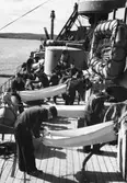 Besättningsman i hängkoj på däck.