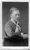 Ånnaboda 12 februari 1968 Närbild på ett litet barn som är klädd i vit jacka med luva, vit halsduk, svarta byxor och svartvita vantar. Barnet har skidor på fötterna och stavar i händerna. Det ligger snö på marken.