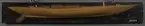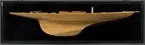 Utställningen "Skärgårdskryssaren 80 år" i trappmonter. Detaljbild av montern med halvmodell i fokus.