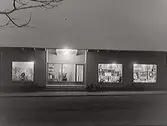 Kooperativa Kvinnogillet i Varberg samlat utanför en glasveranda. Kvinnogillet startade år 1912, efter ett tal av Josefina Rosvald i Göteborg, och dess första ordförande var Gerda Persson. När fotot togs var Mary Svensson ordförande (1924-1945). Se även foto nr GB1_247.