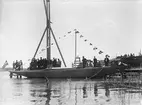 Havskryssaren HAVSÖRNEN I med varvspersonal på Holms Yachtvarv i Gamleby år 1938.