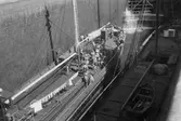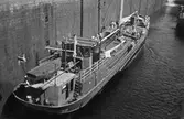 Bygget av Södertälje kanalverk. Fartyget Lina Kunstmann av Stettin passerar genom kanalen.