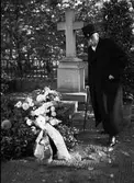 Kransnedläggning vid professor Emaunel Linderholms gravvård på Uppsala gamla kyrkogård, Uppsala 1939