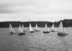 Volontärsegling med stjärnbåtar och måsungar, ovisst när. På bilden se fr v t h måsunge 51, stjärnbåt 101 DIRIGOLD, måsunge 40 och stjärnbåt 106 METEOR. Namnen DIRIGOLD och METEOR var aktuella vid mitten av 1930-talet.